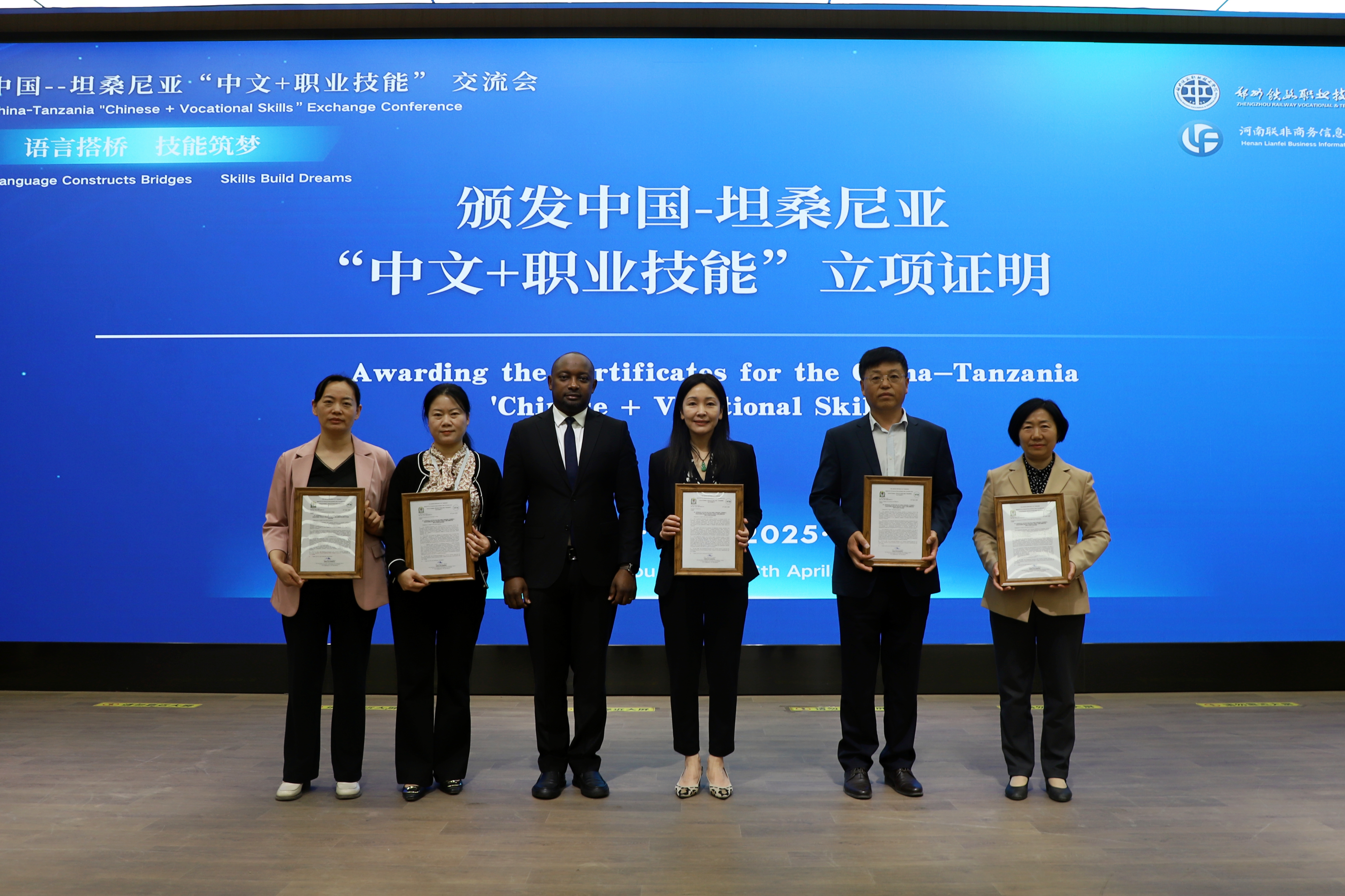 416日,我校参加由郑州铁路职业技术学院承办的2025中国-坦桑尼亚中文+职业技能项目交流会。来自坦桑尼亚驻华大使馆、坦桑尼亚职业教育培训局、达累斯萨拉姆大学,以及省内7所职业院校的近百名中外嘉宾共同出席会议,就深化职业教育领域国际合作进行深入交流。